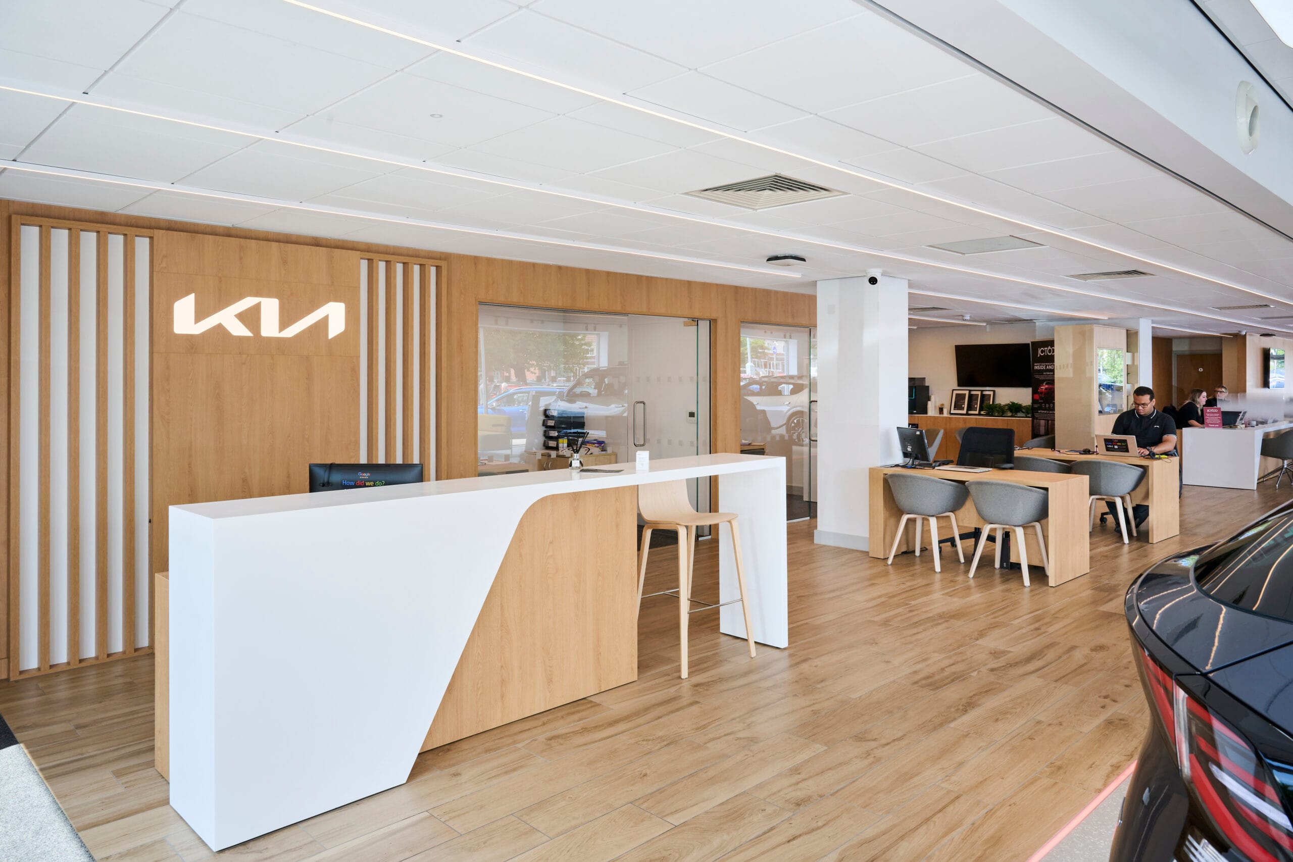 Collaboration was key to the project’s success. We worked closely with Castle House as the main contractor and ADPM as project managers to coordinate the design and delivery phases efficiently. Our team ensured that all aspects of the refurbishment remained true to Kia’s brand vision, while also addressing the practical needs of the dealership and its staff.